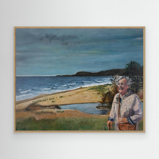 "Utsikten" - The View – Figurative Oil Painting of Man and Dog Watching the Coast of Southern Sweden Skåne