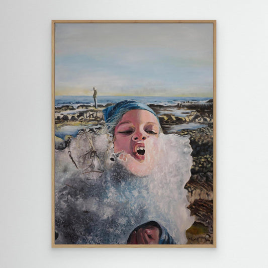 "Prästens badkar" - Icelover – Original Figurative Oil Painting of Child with Ice, Swedish Coast